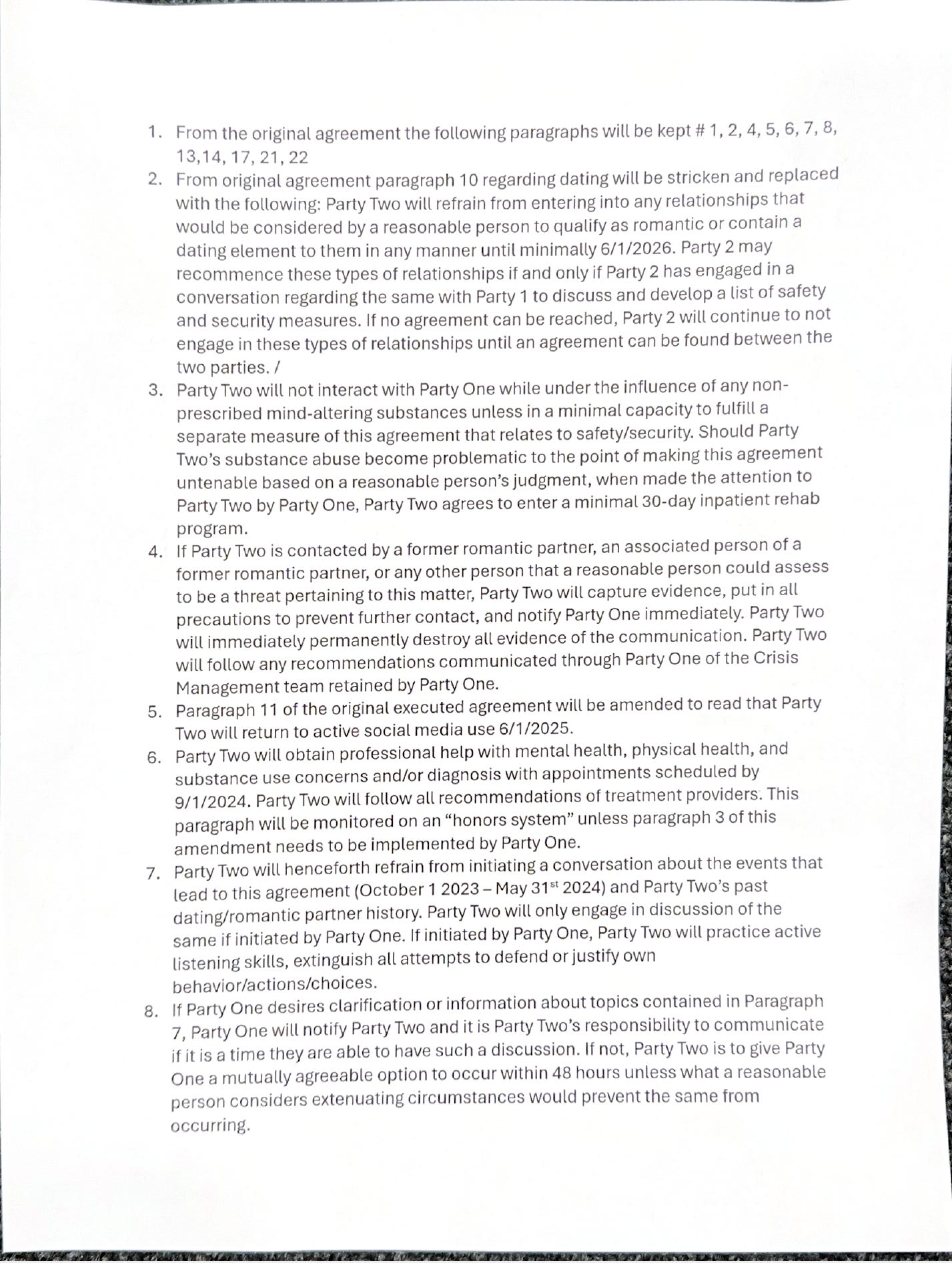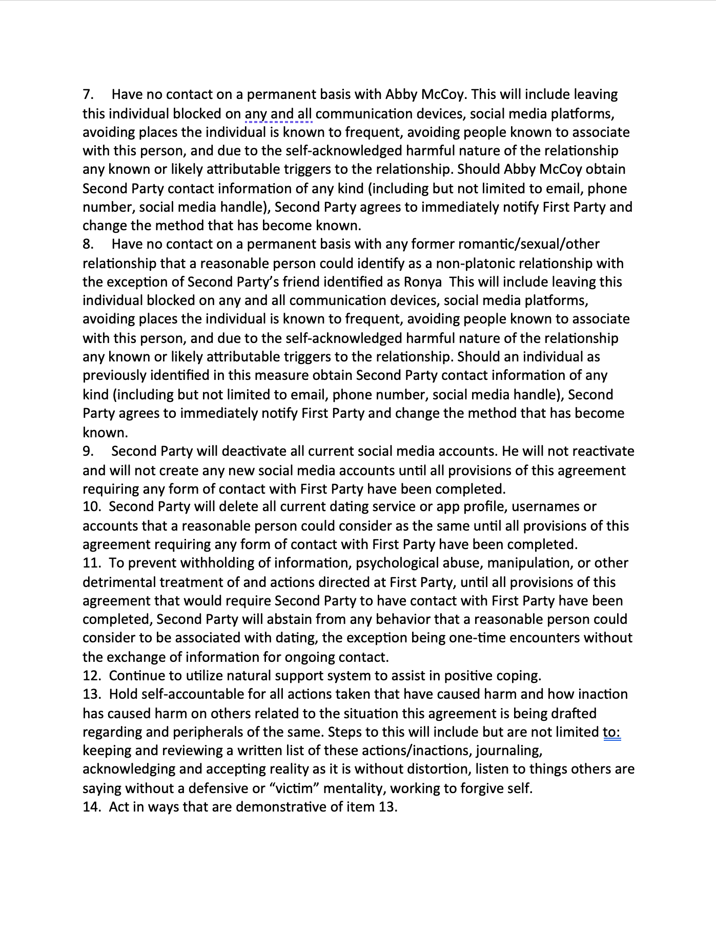 No contact with seven other named individuals from my past