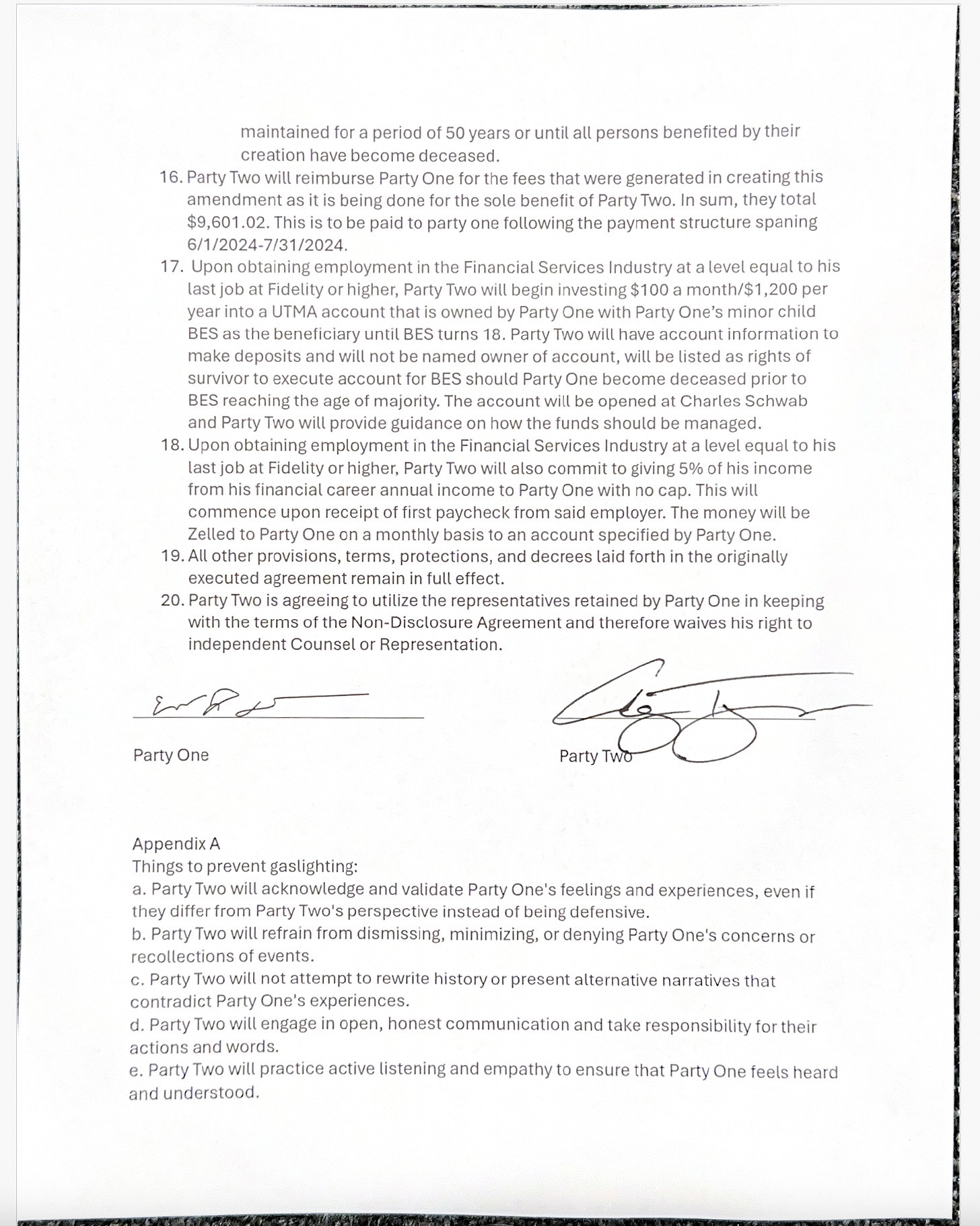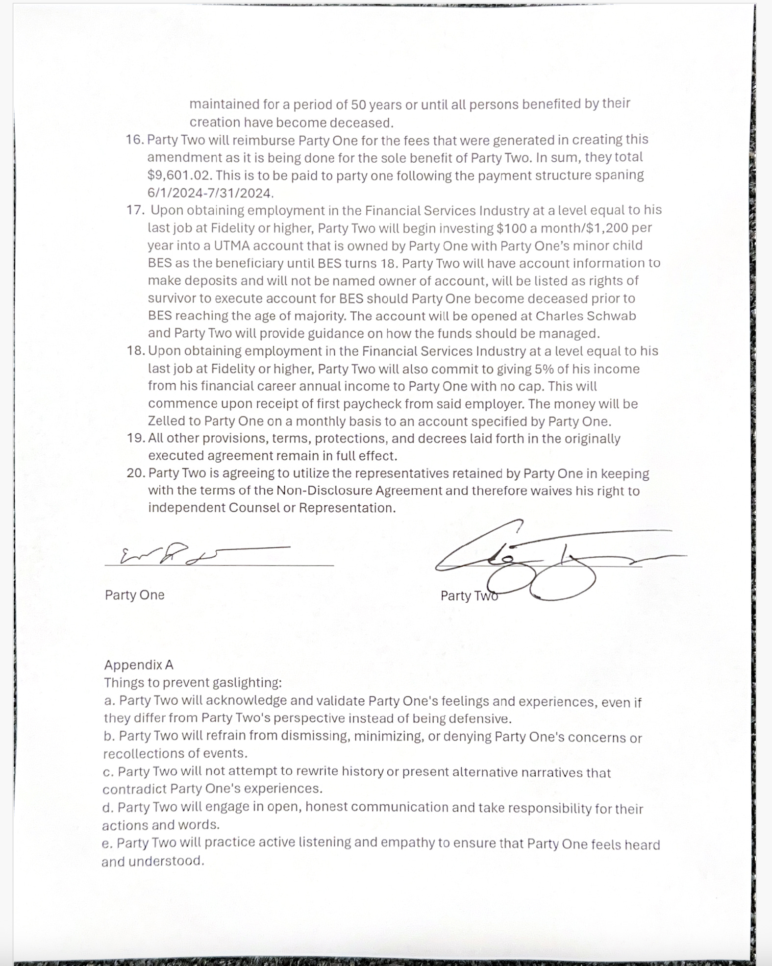 Document everything — texts, emails, banking records, contracts