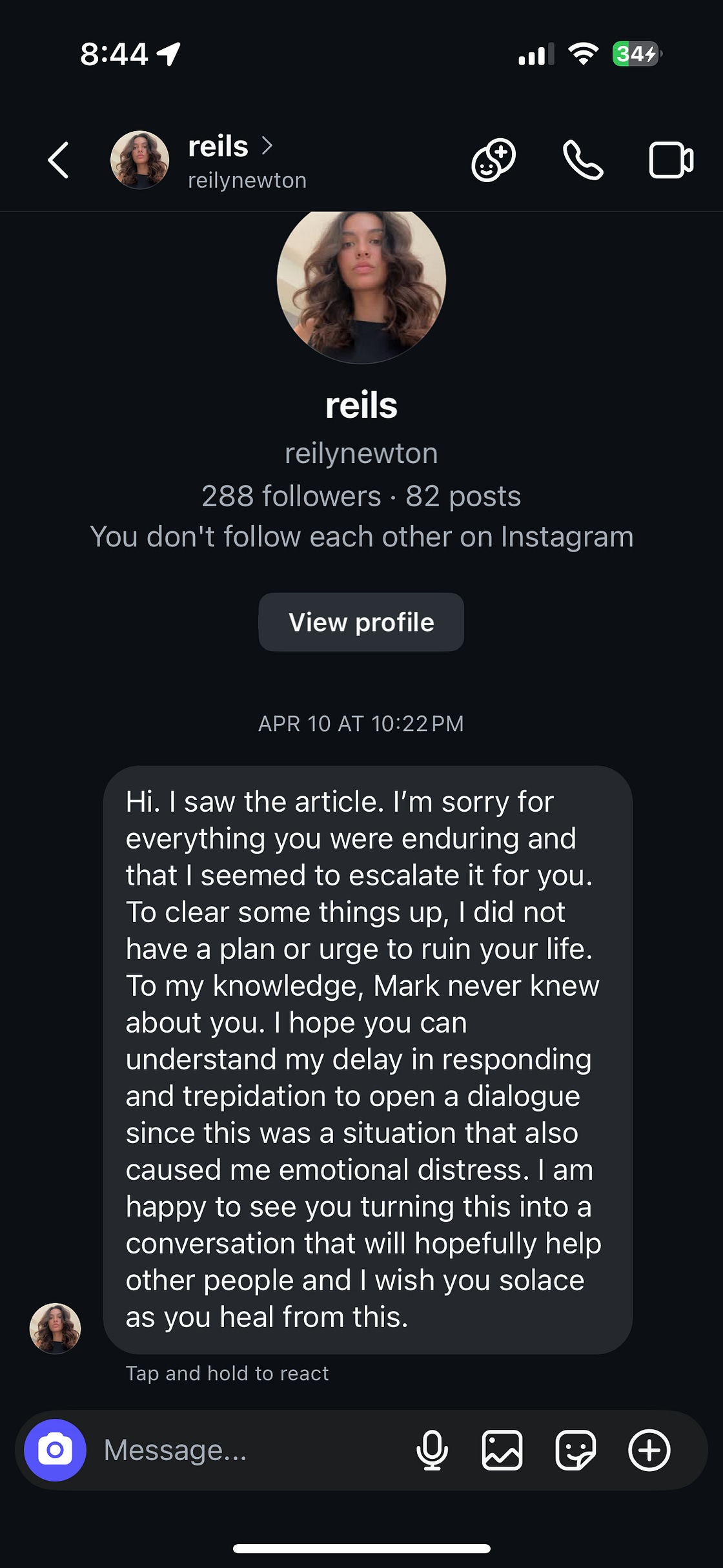 In September 2023, I began dating Reily Marie Newton, someone I met on a dating app. Let me be clear about Reily — she wasn't some long-term ex I was hung up on. We dated briefly before Emily's conspiracy theories forced me to cut contact.