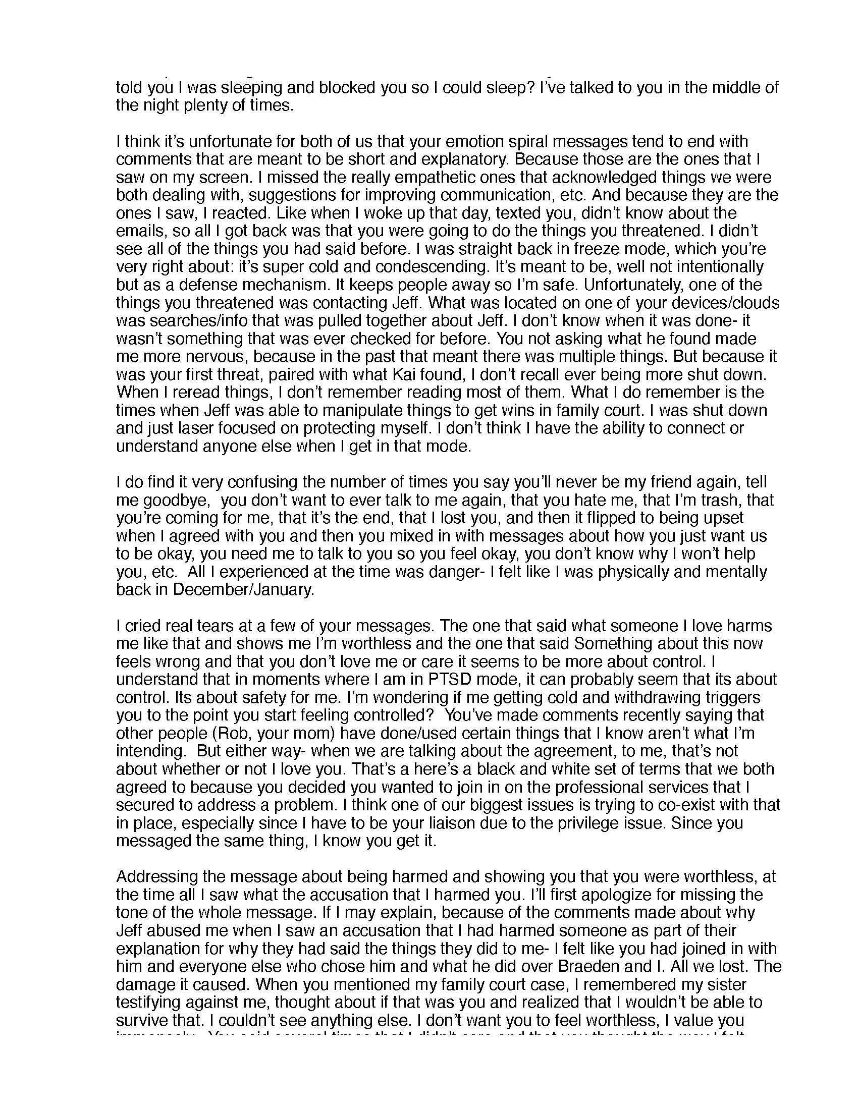 "I seemed to escalate it for you" — Not "Emily extorted you," but somehow SHE'S the one who "seemed" to make it worse